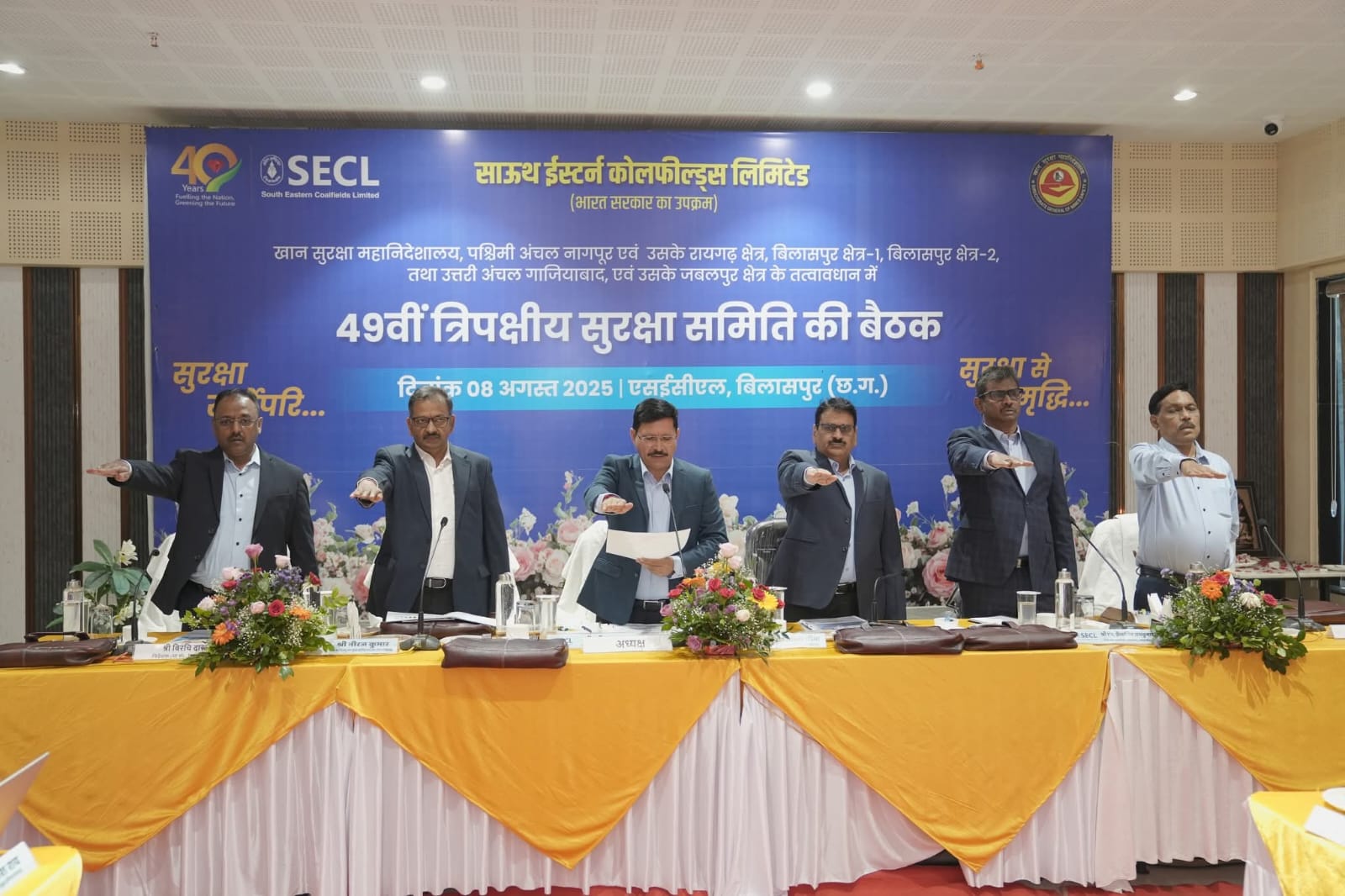 बिलासपुर :- साउथ ईस्टर्न कोलफील्ड्स लिमिटेड (एसईसीएल) बिलासपुर में दिनांक 08 अगस्त 2025 को खान सुरक्षा महानिदेशालय, पश्चिमी अंचल नागपुर एवं उसके रायगढ़ क्षेत्र, बिलासपुर क्षेत्र-1 एवं क्षेत्र-2, तथा उत्तरी अंचल गाजियाबाद एवं उसके जबलपुर क्षेत्र के तत्वावधान में 49वीं त्रिपक्षीय खान सुरक्षा समिति की बैठक आयोजित की गई।