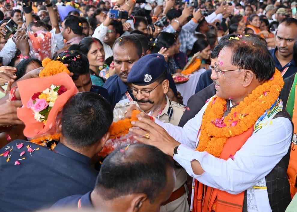 रायपुर, 30 अगस्त 2025 अपनी आठ दिन के जापान और दक्षिण कोरिया के विदेश दौरे के बाद आज मुख्यमंत्री श्री विष्णु देव साय वापस रायपुर लौटे हैं। श्री साय के वापस लौटने पर आज एयरपोर्ट पर उनका भव्य स्वागत किया गया। छत्तीसगढ़ के पारंपरिक कर्मा और पंथी नृत्यों से पूरा एयरपोर्ट परिसर लगभग एक घंटे तक सराबोर रहा। लोगों की बड़ी संख्या में मौजूदगी ने मुख्यमंत्री श्री साय की लोकप्रियता और उनके विदेश दौरे की सफलता को स्वयं ही बयां कर दिया। मुख्यमंत्री का पुष्प गुच्छों से लेकर गजमाला तक से स्वागत किया गया।