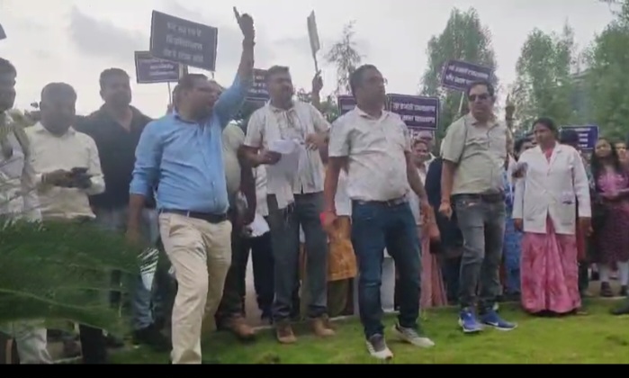 छत्तीसगढ़ एनएचएम कर्मचारी संघ के प्रदेश अध्यक्ष ने कहा कि सरकार ने मोदी की गारंटी के तौर पर हमसे वादा किया था। समाधान का रास्ता संवाद से निकलेगा, ना कि डराने धमकाने से। इस मामले को लेकर एनएचएम कर्मचारियों ने स्वास्थ्य सचिवालय का घेराव कर दिया.
