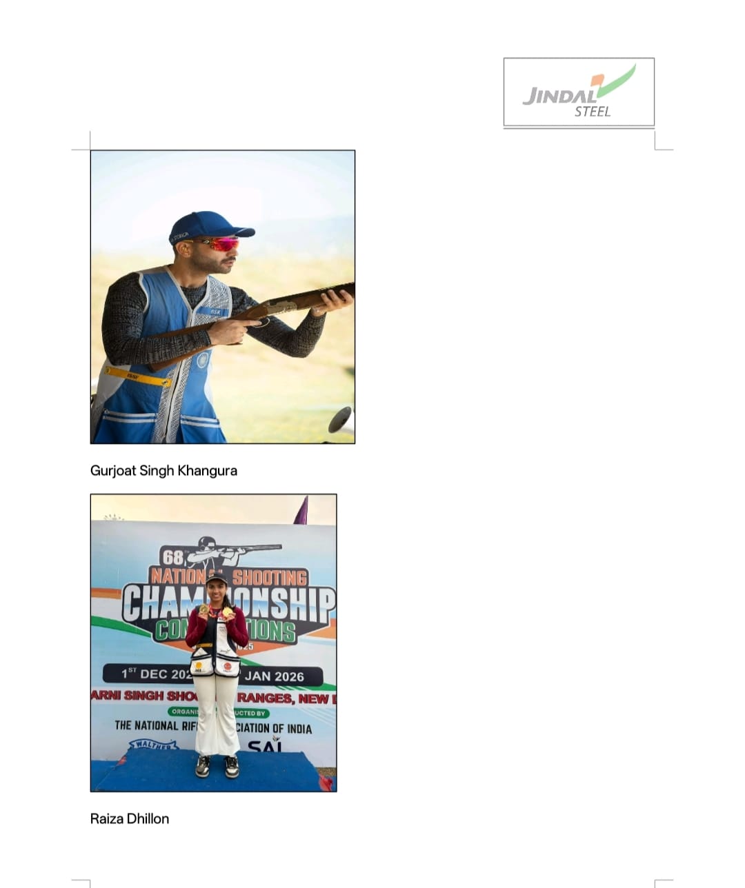 अनुभवी चैंपियन की अनुशासित खेल भावना का प्रदर्शन करते हुए ओलंपियन मिराज अहमद खान ने चैंपियनशिप में दो रजत पदक जीते। उच्चतम स्तर पर उनकी निरंतरता आने वाली पीढ़ी के निशानेबाजों को प्रेरित करती है, और जिंदल स्टील उनके इस प्रेरणादायी सफर का समर्थन जारी रखने पर गर्व महसूस करता है।