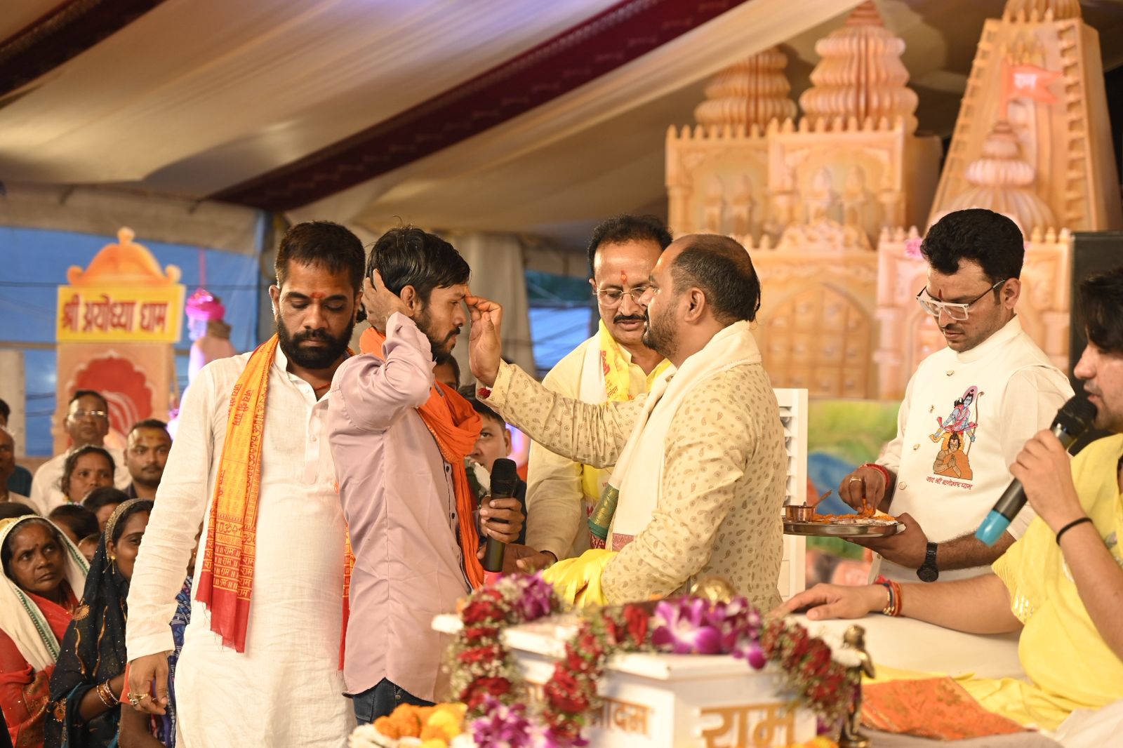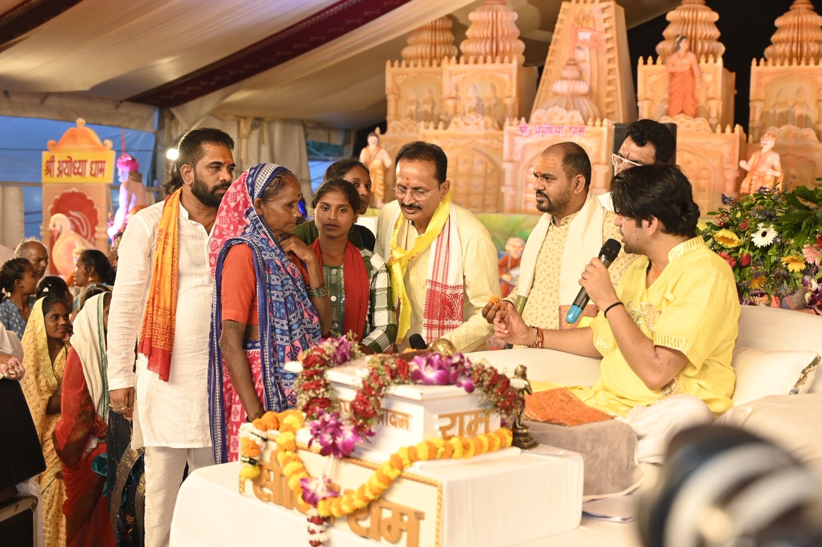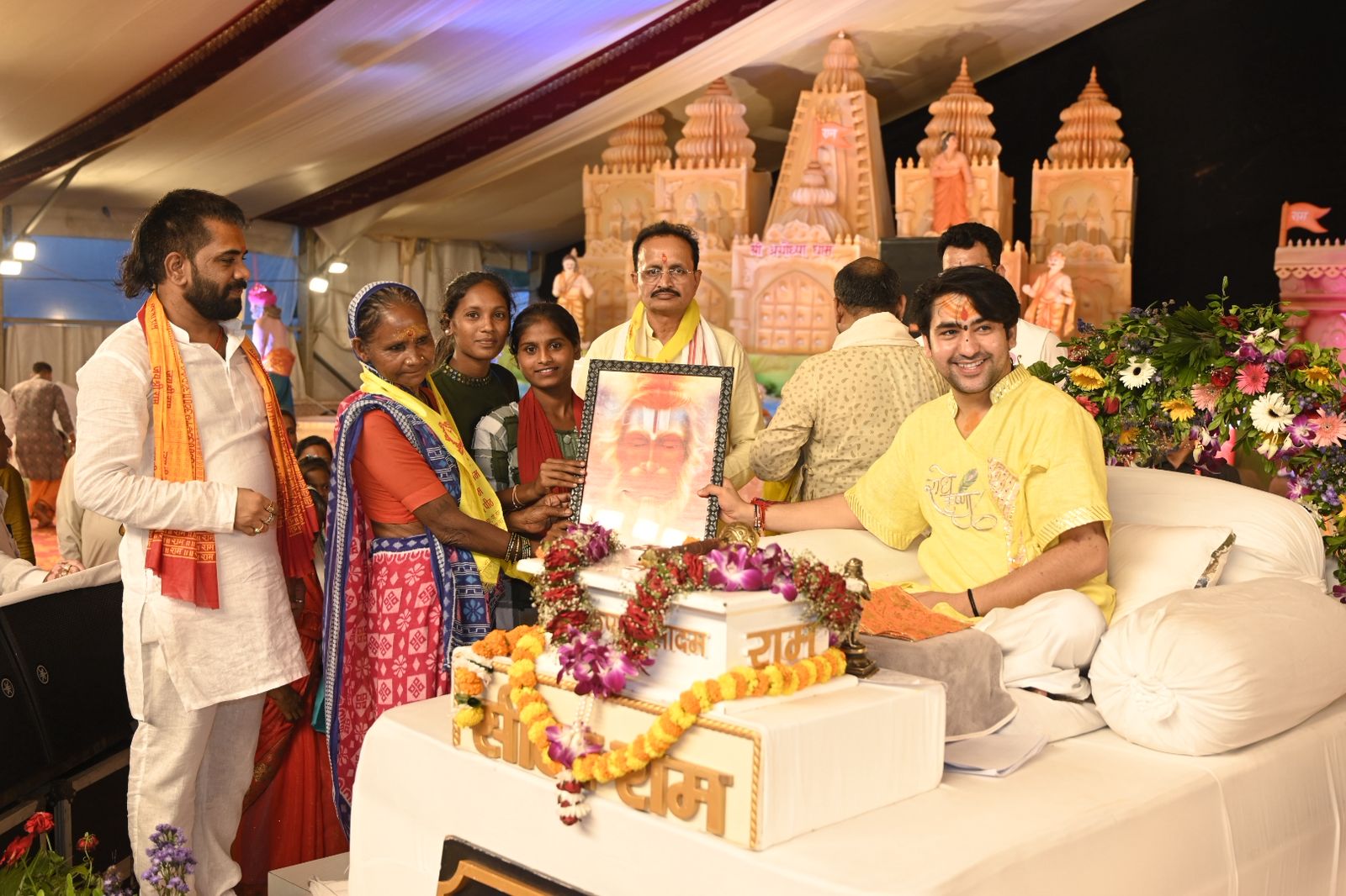 रायपुर:- युवा समाजसेवी चंदन – बसंत अग्रवाल (थान खम्हरिया वाले) के नेतृत्व में स्व. श्री पुरुषोत्तम अग्रवाल स्मृति फाउंडेशन के तत्वावधान में दही हांडी उत्सव स्थल,अवधपुरी मैदान, श्रीनगर रोड, गुढिय़ारी में चल रहे बागेश्वर धाम पीठाधीश्वर पूज्य पं. धीरेंद्र कृष्ण शास्त्री की हनुमंत कथा के तीसरे दिन मुस्लिम समाज के सलमान ने जहां हिन्दु धर्म को अपनाया वहीं ओडिया समाज की बिन्दु बाई और श्रीमती निर्मला ने ईसाई धर्म को छोड़कर फिर से हिन्दु धर्म अपनाकर घर वापसी की।