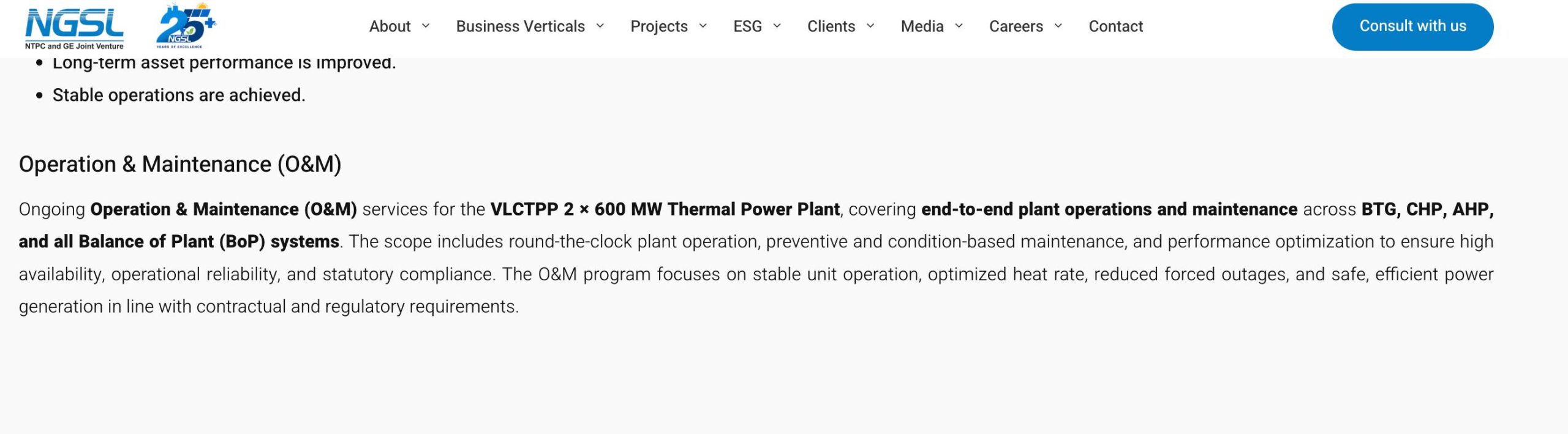 ऐसे ही कुछ दावे एनजीएसएल के वेबसाइट पर देखने को मिले हैं। इसमें एनजीएसल ने बताया है कि वेदांता के सिंघीतराई विद्युत संयंत्र में वह विभिन्न सेवाएं मुहैया कराएगा। इन सेवाओं के दायरे में यूनिट-1 के प्रचालन एवं अनुरक्षण से संबंधित सभी तकनीकी दायित्व तो शामिल होंगे ही, बॉयलर टर्बाइन जेनरेटर (बीटीजी), कोल हैंडलिंग प्लांट (सीएचपी), ऐश हैंडलिंग प्लांट (एएचपी), और प्लांट के अन्य हिस्से (बीओपी) जैसी मुख्य प्रणालियांे का रखरखाव भी शामिल है। इसके साथ ही संयंत्र का चौबीसों घंटे प्रचालन, समयबद्ध और स्थिति-आधारित रखरखाव, तथा प्रचालन की विश्वसनीयता और वैधानिक नियमों का पालन सुनिश्चित करना भी एनजीएसएल प्रदत्त सेवाओं के दायरे में शामिल है।